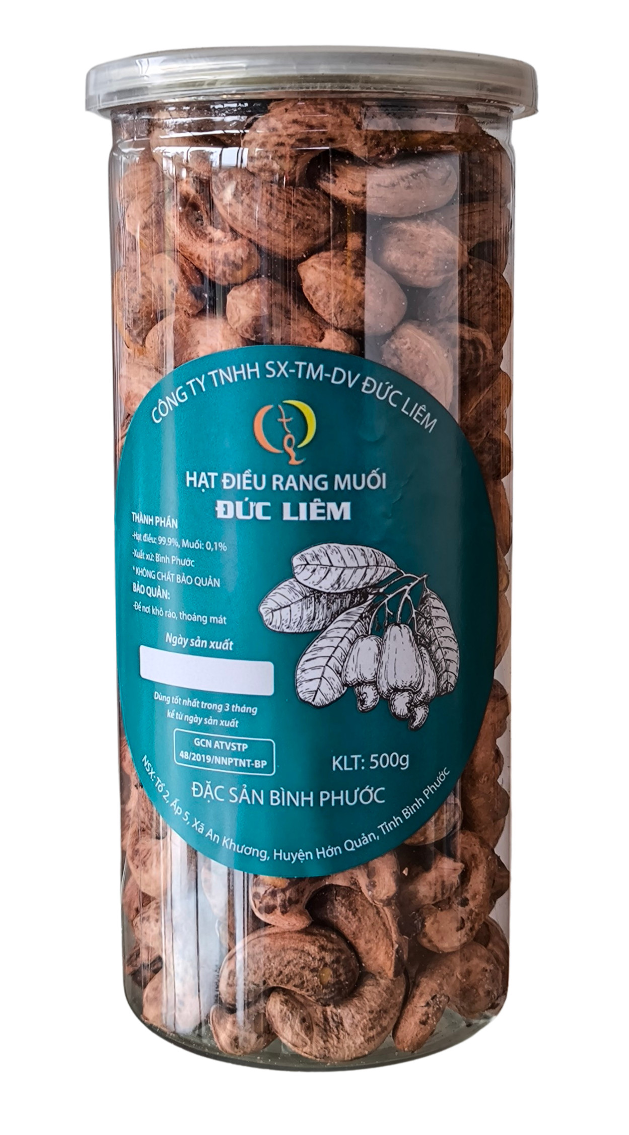 - Tên sản phẩm: Điều rang muối hộp pet size cồ Bình Phước 500g
