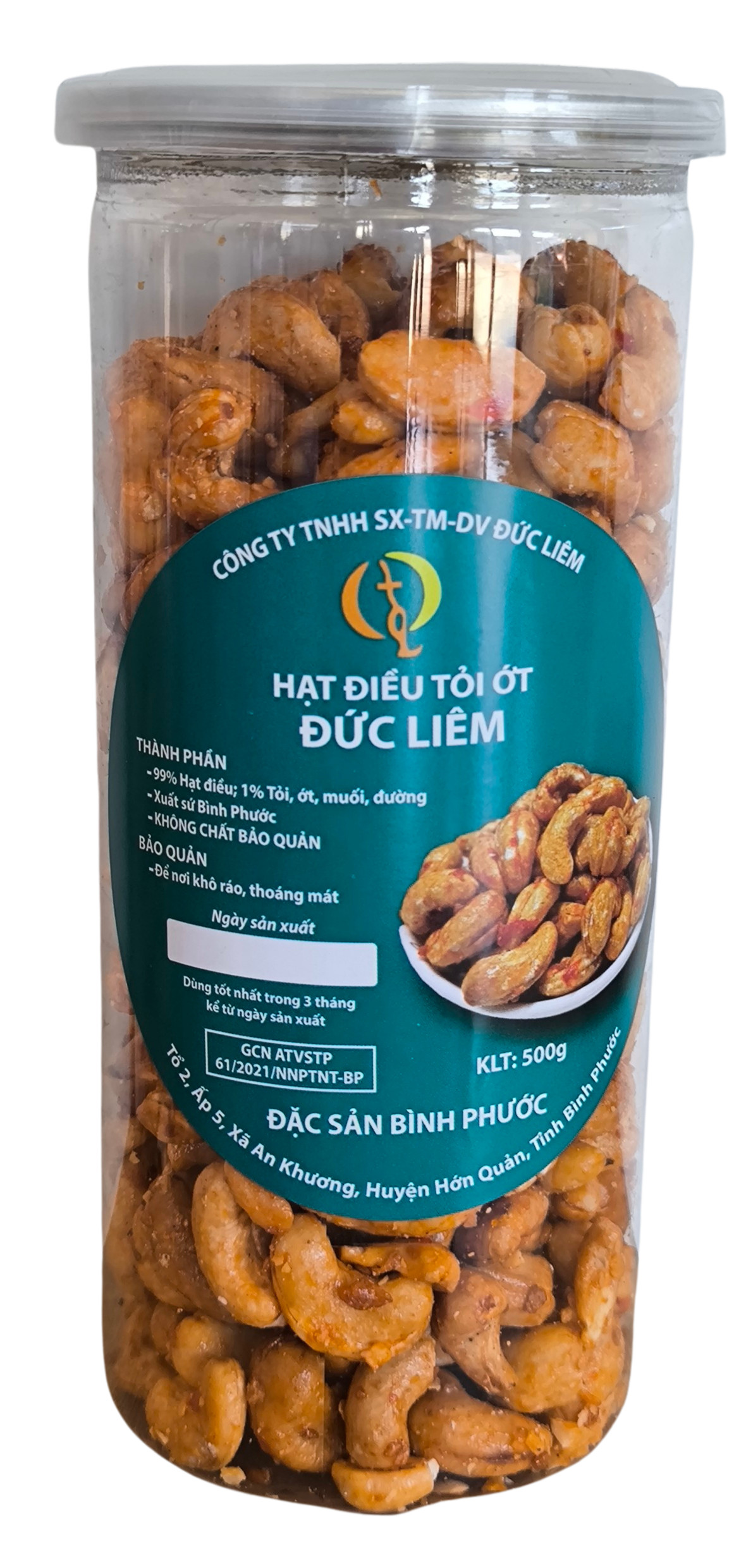 - Tên sản phẩm: Điều tỏi ớt nguyên hạt, hũ pet loại 500g